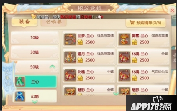 女魔兰心装备兑换列表: