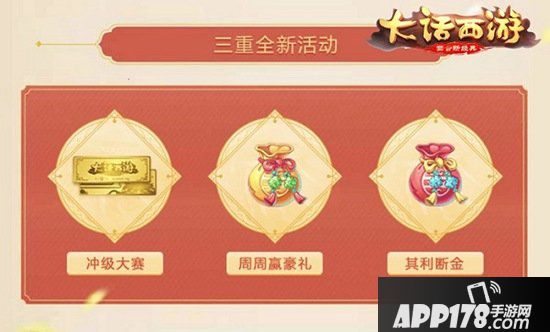 全新的区服,谱写全新的传说。玩家们可参与“冲级大赛”、“其利断金”、“周周赢好礼”这三大新服活动,赢取大话精心准备的真金与神兽奖励!在新服活动期间,玩家成功跻身本服练功狂人榜前100名,将可以获得一份“冲级大赛”的专属大礼包,而排名第一的玩家还可以额外赢取15克999纯金金条实物奖励!