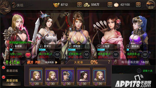 经过一段时间的扫荡,我终于升到了26级,此时系统解锁了侠侣功能,玩家可以解锁五位美女,运用不同的道具提升5位美女等级。随着美女等级的上升,人物本身的属性也会提高,不同的美女拥有不同的属性加成,从而大大提高玩家角色的战斗力,后续的侠侣觉醒功能更会大幅增加人物和侠侣的属性,需要玩家每日多多训练。