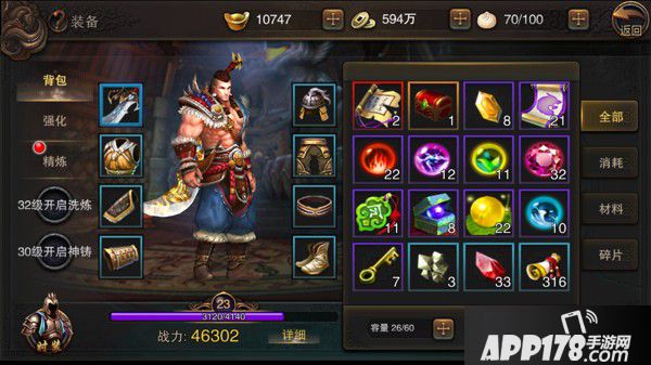 23到25级也是一个需要提升战力的阶段,在这里我推荐一个最简单经济的方式来加强战力——提升装备品质。简单来说,就是将自己的绿色装备提升到蓝色装备,并根据等级进行强化。人物总共有8件装备,每件装备由绿色升级到蓝色都需要图纸和25个锻造石,所有的图纸我们都可以从鏖战英魂中的BOSS身上获得,而锻造石的获得更加简单,只需要刷相应的掉落关卡即可获得。将所有的装备提升到蓝色之后,我们只需点击一下推荐强化按钮,系统就可将装备升级到与人物相匹配的等级,非常方便。