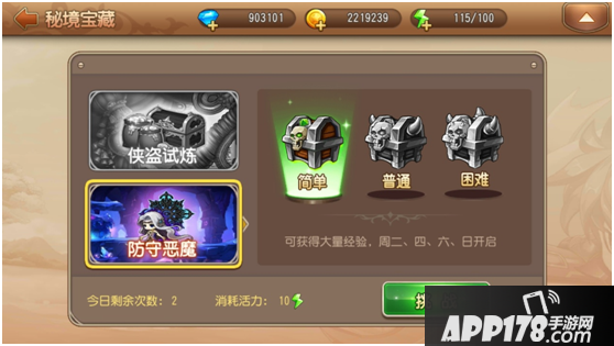 防守恶魔副本只有周二四六日开启,通关该副本可以获得大量的经验。