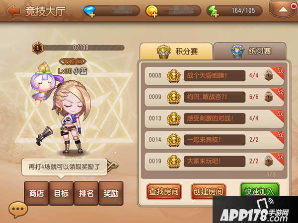 2.竞技场目标:一边打竞技场锻炼技术,一边完成任务拿金币和竞技币奖励。