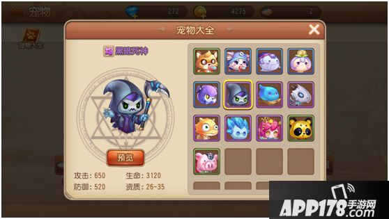 游戏内的平均型宠物有:狐狸宝宝,黑暗死神