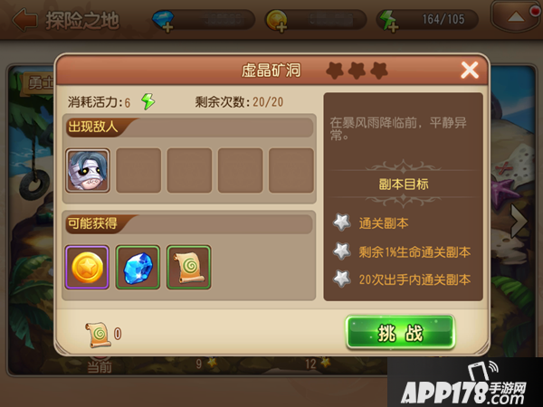 探险之地是个人的PvE副本,每次挑战成功都可以获得经验、金币和道具的奖励,而且还可以顺道完成各种任务,在活力充裕的时候,可以进行副本扫荡,快速的获得大量经验。