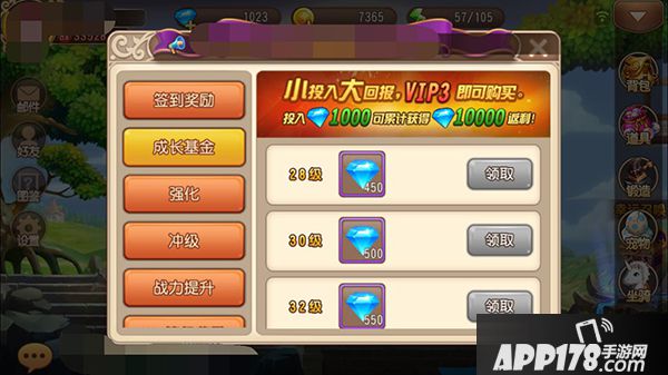 成长基金只要满足VIP3以及1000钻石即可购买,许多玩家觉得花了1000钻石,但却不能立刻得到东西很亏啊!小编经过精确的计算发现,只要玩家等级达到22级,就可以领回投入的1000钻,剩下的9000钻石!就是纯纯的福利了啊!而且如果你已经超过了22级,直接购买成长基金,之前的钻石也是可以领取的!