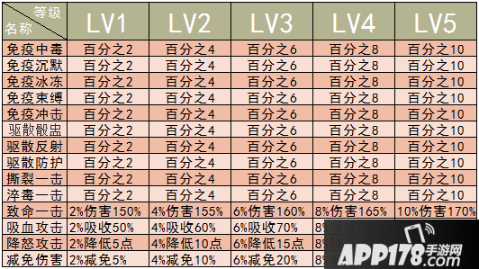这里伤害有无视防御的百分162的伤害,还有百分之104的伤害,这两个伤害加成堪称恐怖,并且在PVP中触发可以说是决定胜局的被动。伤害减免中规中矩,但是三级前都没用,数据太低。如果五级在大招时候触发可以说对方就输了,有决定胜局的能力。