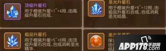 4-8使用极品升星石,需要圣光圣灵石保护(没有圣光圣灵石保护的话,升星失败会降级,幸运值满100时可以卸掉圣光圣灵石以节省材料),可由顶级升星石合成,4合1;