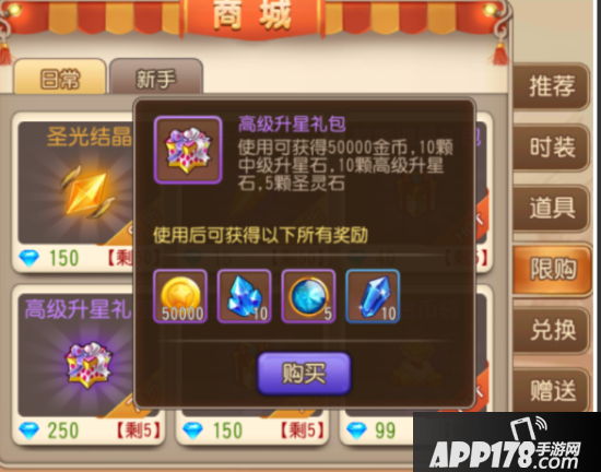此外还有个省钱方法:商城--限购—高级升星礼包