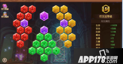 符文系统一共有30个槽位,红绿黄各10个,其中,红色主攻击,绿色主生命,黄色主防御。随着人物等级的提升,槽位会逐步开启。