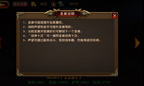 圣兽身份不凡,当然也不是普通的大鱼大肉可以满足滴,唯有声望和金币可以帮助他们变得更加强大!知道了圣兽吃什么,那么问题就来了——金币容易拿,可要到何处去获取声望呢?其实获得声望的方式也不少,但参与钓鱼活动和竞技场是最容易获取大量声望的途径。只有投喂足够的金币和声望,圣兽才能不断进阶,最后化为神·烛龙哦!