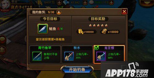 3,鱼饵:每日钓鱼次数有限,想混水摸鱼的玩家可以提升VIP等级,VIP等级越高,钓鱼次数越多。