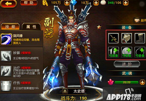 进阶后,副将的装备消失并开启下一阶的装备(上一阶的装备属性将永久加入副将的基础属性中)。欢迎关注APP178手游刀锋无双专区了解此款游戏的最新动态!