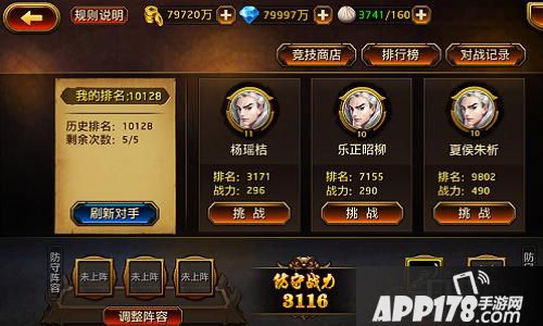 22级,竞技场开启,各位主公可以和其他玩家一较高下啦!自古文无第一武无第二,谁不想独占鳌头傲视群雄呢?竞技场玩法不但可以让各位主公获得大量声望,每日还有丰富的钻石可得,真可谓名利双收!