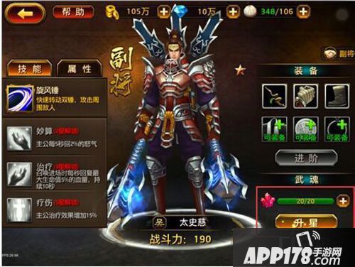4.收集齐足够的灵魂石可为名将升星,2星/3星/5星将分别开启1个技能。