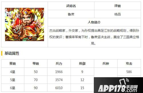 以上就是大牌三国鲁肃属性图鉴的全部内容,希望能给喜欢鲁肃的小伙伴们带来帮助。更多相关攻略稍后送上~请继续关注APP178手游网~更多精彩期待你的分享~