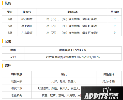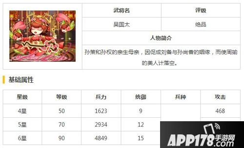 以上就是大牌三国吴国太属性图鉴的全部内容,希望能给喜欢吴国太的小伙伴们带来帮助。更多相关攻略稍后送上~请继续关注APP178手游网~更多精彩期待你的分享~
