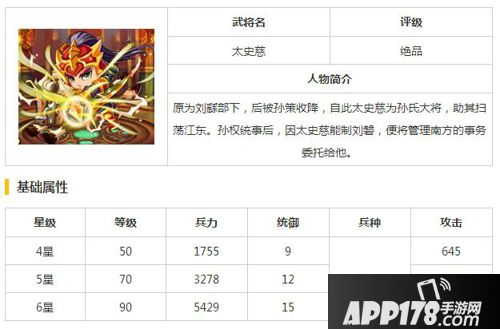 以上就是大牌三国太史慈属性图鉴的全部内容,希望能给喜欢太史慈的小伙伴们带来帮助。更多相关攻略稍后送上~请继续关注APP178手游网~更多精彩期待你的分享~