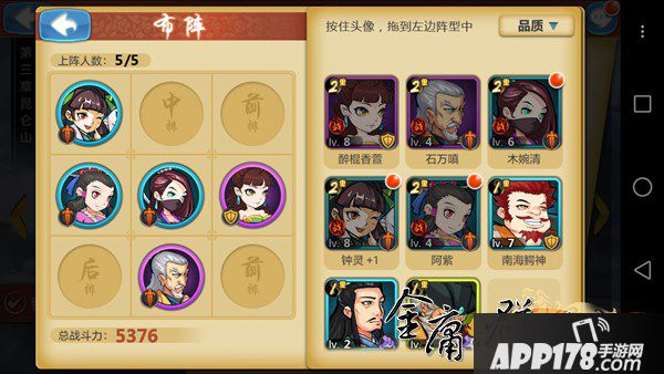 除了团队技能的使用之外,玩家还需要在阵容配置上有所考虑。游戏采用了九宫格式的站位,分为前中后三排、上中下三行,最多可以让五位侠客上阵,所以根据地方的阵容来调整己方站位,就是每一位玩家的必修课,例如防守型侠客虽然一般都是布置于前排,但是根据敌人的阵容,有时候反而可以单独放在某一行,来吸引敌人的火力。值得一提的是,每一位侠客都有着自己独特的缘分,例如婉妹与段公子、灵妹一同上场时,即可获得武力+30%的buff,所以如何配置侠客阵容,是值得各位玩家深思熟虑的。