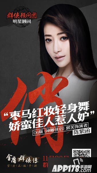 重忆儿时经典,再续江湖前缘!金庸武侠巅峰之作,最新潮武侠手游《金庸群侠传》今日迎来全平台公测!继黄日华、吕颂贤、周海媚、吴启华等多位金庸影视剧巨星加盟之后,曾在06版《神雕侠侣》饰演郭芙的性感女神陈紫函也在今日加盟群侠顾问团。枣马红妆轻身舞,娇蛮佳人惹人妒,性感女神陈紫函现身助阵,力邀众位玩家加入《金庸群侠传》,感受鲜衣怒马江湖行!
