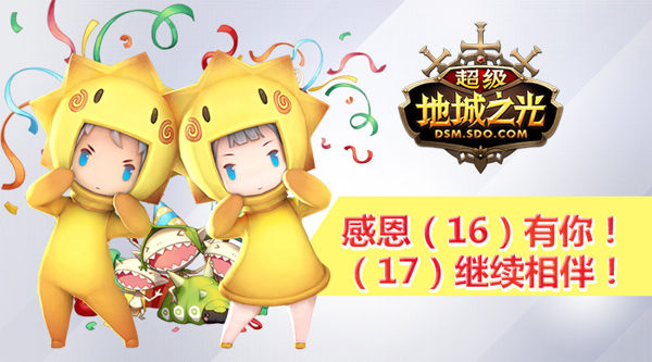 红红火火又一年,2017新的一年马上就要到咯,回顾2016,3D嗨萌乱斗手游《超级地城之光》是否给你留下许多难忘的记忆?2017迎新之际,《超级地城之光》14大狂欢活动送礼不断,与你一起开始嗨萌乱斗新旅程,感恩一路(16)有你,一起(17)继续相伴!