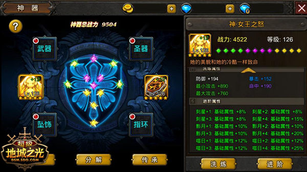 在《超级地城之光》中,有着丰富的装备养成体系,其中神器养成又因其带来的战力不菲尤其受玩家们喜爱。伴随“浪漫樱花季”全新版本带来的精彩,更高等级的神器126级金色刻印神·裂变和126级金色魂守神·女王之怒来啦!配上高等级稀有神器,将全面提升生命上限、穿透、最大攻击、最小攻击四大基础属性,想要成为游戏中的最强统治霸主,2大126级高级神器绝对值得你拥有!玩家可通过全新樱花季版本活动获得呦!限时产出,速速来抢!