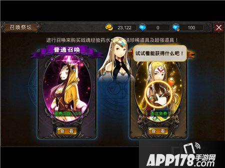 召唤祭坛分为普通召唤和高级召唤,使用钻石进行召唤有更高的几率可以得到整个的战魂哦!已经获取的战魂会转化为对应的魂晶。