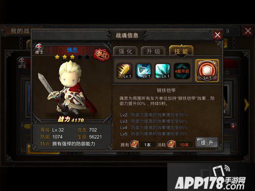 技能:随着战魂进化等级的不同,会逐渐解封战魂的技能,使用技能书可以让战魂的技能等级提升