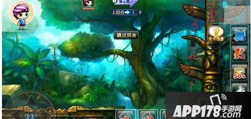 接下来小编我就告诉大家一套通关秘籍,首先,在初始位置处转向左边,使用传送道具,角度33°,力度50传送到左边第2格上,因为怪物会不断刷新,在这里可以避免下面的长矛兵攻击我们,而且也可以免受左边怪物的攻击(攻击角度不够),这样我们就可以在这里安心的丢我们的炮弹来击杀我们对面和平台上的怪物了。
