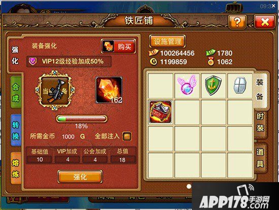 3、随着强化等级的提升,每一级所需要消耗的强化石数量也会随之提升。可以通过充值VIP或者提升所在公会铁匠铺的等级来提高每颗强化石所提升的经验。