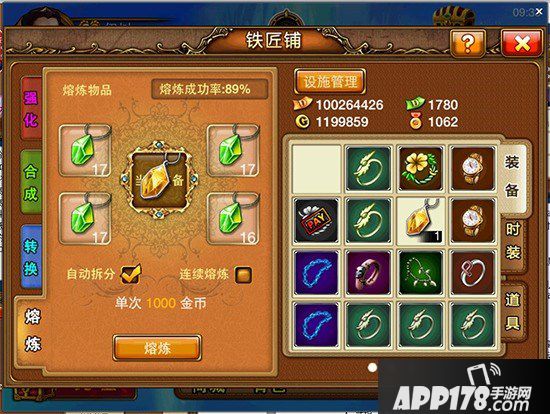2、熔炼物品的类型决定了产出物品的类型,4种圣兽石、装备、和一些物品碎片可以通过熔炼获得更高等级的物品。