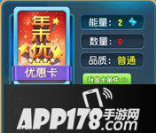 优惠卡是一张四星的卡片,可以对任一对手使用,会在1回合内,让自己的建设费减少10%,让指定的对手的建设费增加10%。优惠卡使用需要消耗星星2,卡片点券数为40,金卡点券数为2180。卡片升级为金卡需要完成成就指挥若定,并且使用优惠卡2次。