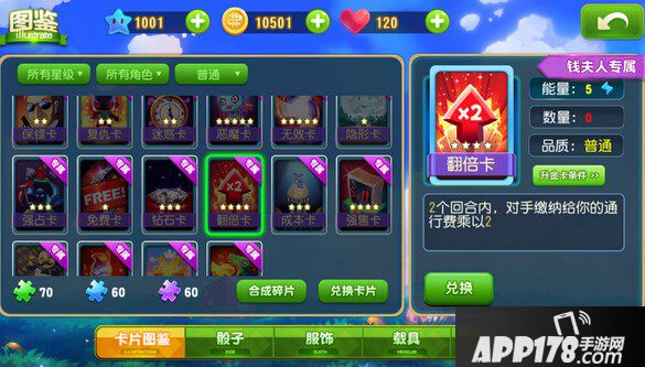 《大富翁9》除了明显的角色特性外,还有丰富的游戏卡片,游戏道具和游戏技能,能帮小伙伴们快速制胜,驰骋商场哦!下面是《大富翁9》卡片资料详细介绍。