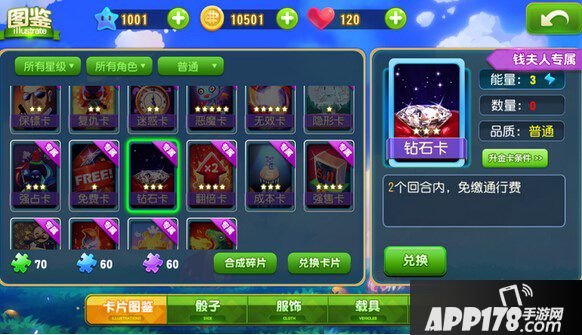 《大富翁9》除了明显的角色特性外,还有丰富的游戏卡片,游戏道具和游戏技能,能帮小伙伴们快速制胜,驰骋商场哦!下面是《大富翁9》卡片资料详细介绍。