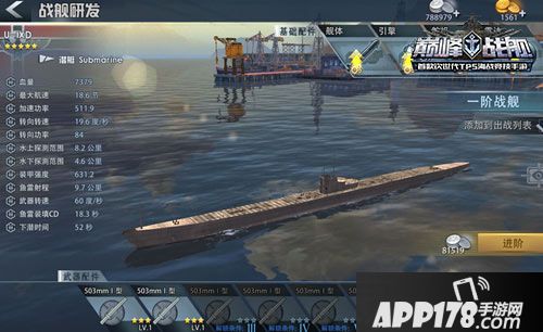 在属性方面,可以看到,基本属性中,初始的航速就达到18.6节,这在潜艇中算的上非常出色的属性。