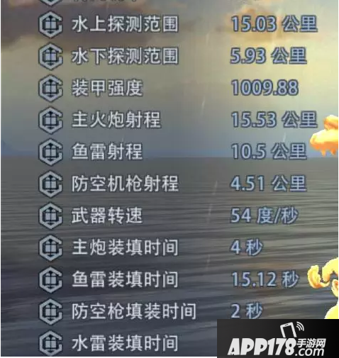从图中,我们可以看到,龙魂拥有15.53的主炮射程,可谓是非常的远,甚至可以和巡洋舰的射程想媲美。同时他的主炮填装时间仅仅只有4秒,并且搭载四门主炮,这就成为了龙魂最有力的杀伤武器。
