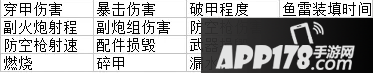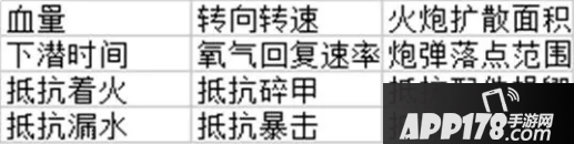 首先:配件系统一共有4个,分别是水密舱,装甲带,火控塔和飞剪艏。四个配件作用各有不同,水密舱和装甲带以防御为主,火控塔和飞剪艏以进攻为主。下面分别附上四个技能的列表如下: