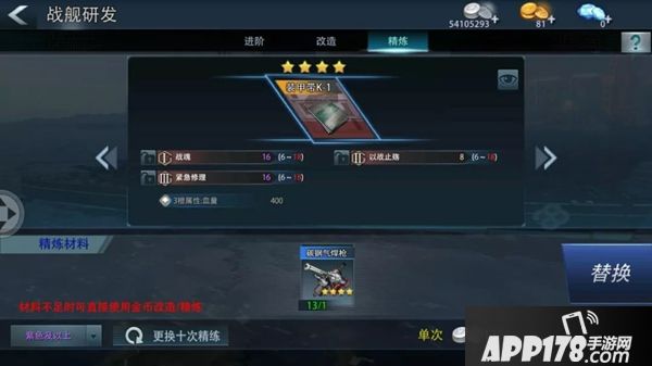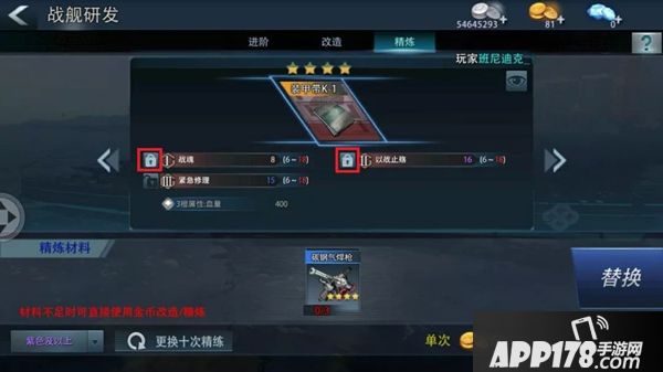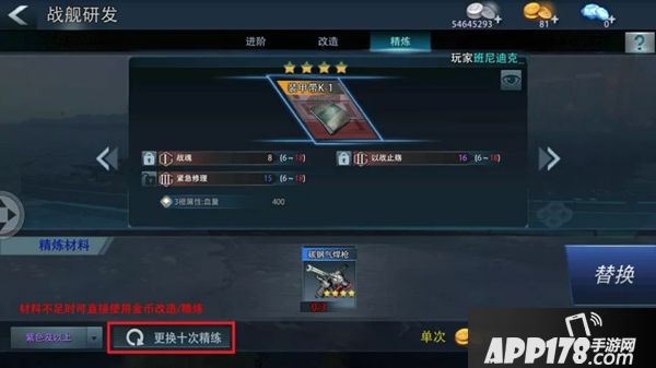 第十二步:选择左下角的“更换十次精炼”则可以快速精炼部件