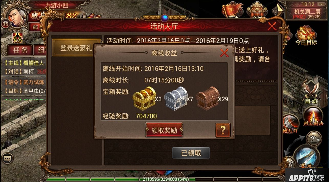 今天给大家带来的介绍是《传奇世界手游》中贴心的离线奖励系统。不同于端游,可以长时间在线练级打宝,手游的在线时长很大一部分原因取决于手机的电量,因此也无法保证做到时刻在线。当然直接插着充电器或是随身携带充电宝的例外。