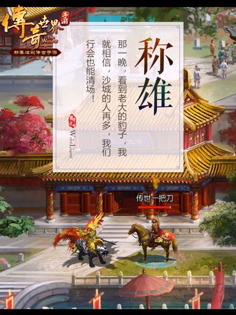 一支穿云箭,千军万马来相见!继炫彩CG曝光后,由腾讯与盛大游戏携手打造的官方正版《传奇世界手游》中州画卷绝美亮相!中州城以画卷形式从左到右徐徐展开,初入中州、PK战斗、拜师学艺等场面一一再现。面对熟悉的场景,你是否忆起了曾经与兄弟一同并肩作战的岁月?传奇世界烽火再起,大军集结代发,你准备好再次回归沙场了吗?