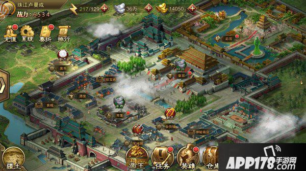 皇宫中可以领到税收银两,达到一定级数之后,就能升级兵种科技和军府,提升所有武将的实力。