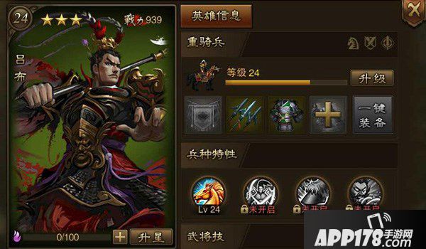 (重骑兵)吕布,三星武将,乱舞伤害在前期看来相当不错,前期能有幸得到吕布将会是相当不错的。