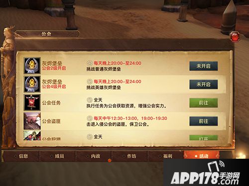 活动界面,公会任务领取以及一些公会活动的入口