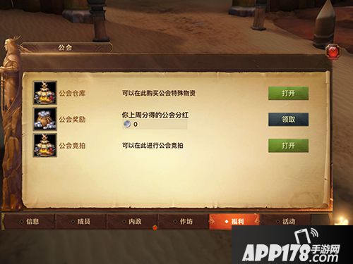 福利界面,公会奖励领取,公会商店,公会竞拍