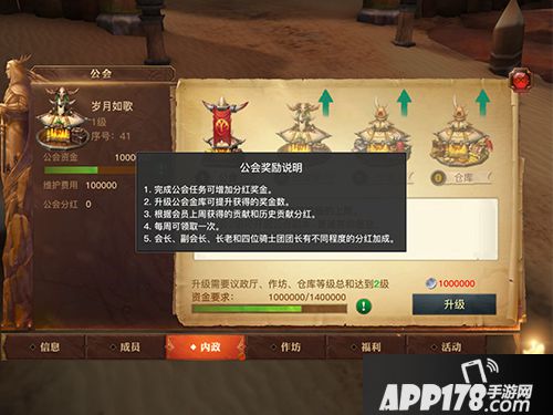 ④仓库——升级增加公会任务获得的分红奖励,增加公会资金上限
