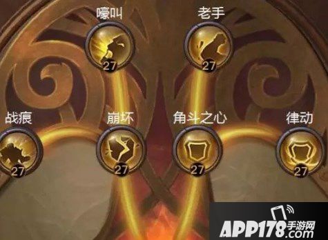 角斗士之心:获得职业主动技能角斗士之心,使用后获得吸收伤害的护盾,数值相当于战士最大生命值的(10+天赋等级*0.25)%持续5秒