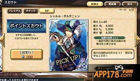 新的海员可以通过“招募”界面进行招募,招募分为三种方式,一种为用NP(航海点数)招募的“点数招募”、用宝石招募的“精英招募”和用通过事件得到的票券招募的“票券招募”。
