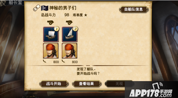 接下来是“船只间战斗”阶段,即和敌方船只1对1战斗,每场战斗需选择战术。