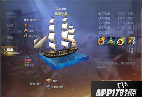 以上就是小编为大家带来的大航海之路盖伦帆船属性图鉴,希望大家喜欢。更多精彩的游戏攻略,敬请继续关注APP178手游网。