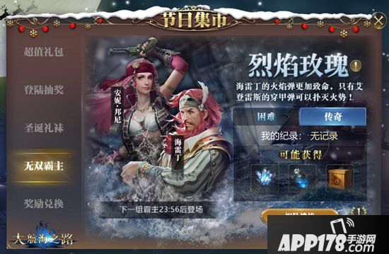 圣诞节活动期间,每日将为船长开放一组无双霸主挑战。作为一类全新来袭的PVE副本玩法,所有等级达到38级的玩家,完成五人组队之后,均可体验全新“无双霸主”玩法。