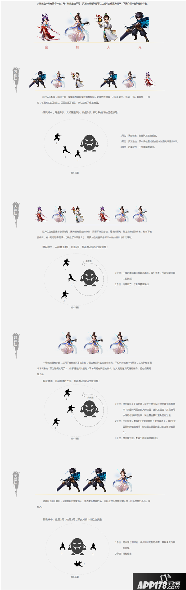 ※ 万能队是鬼+仙+人/魔,三个种族,有不俗的输出也有控制/增强效果,能应对各种场合。